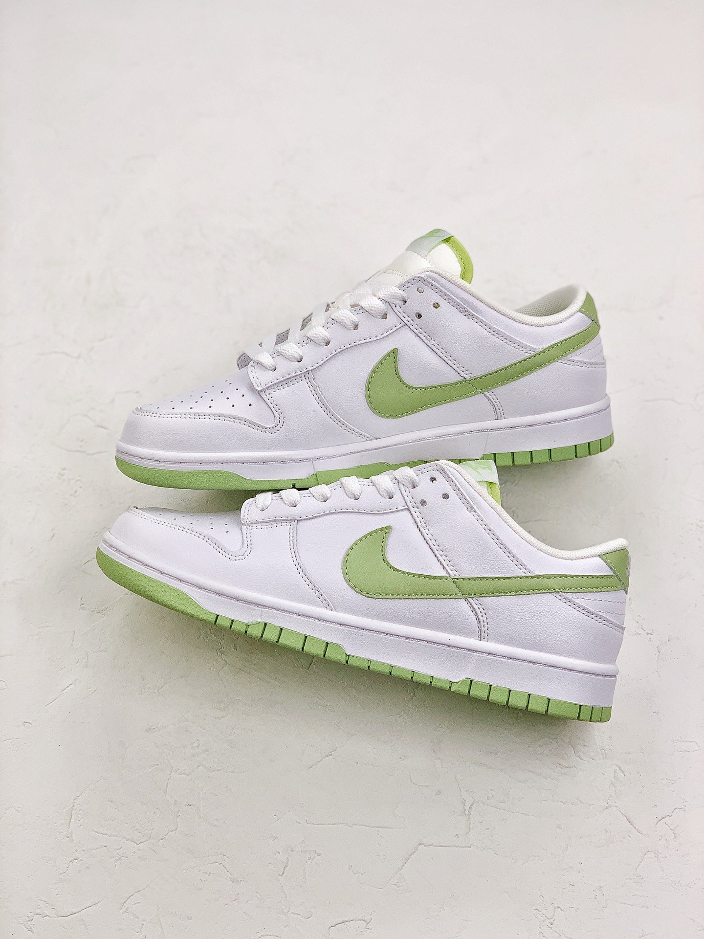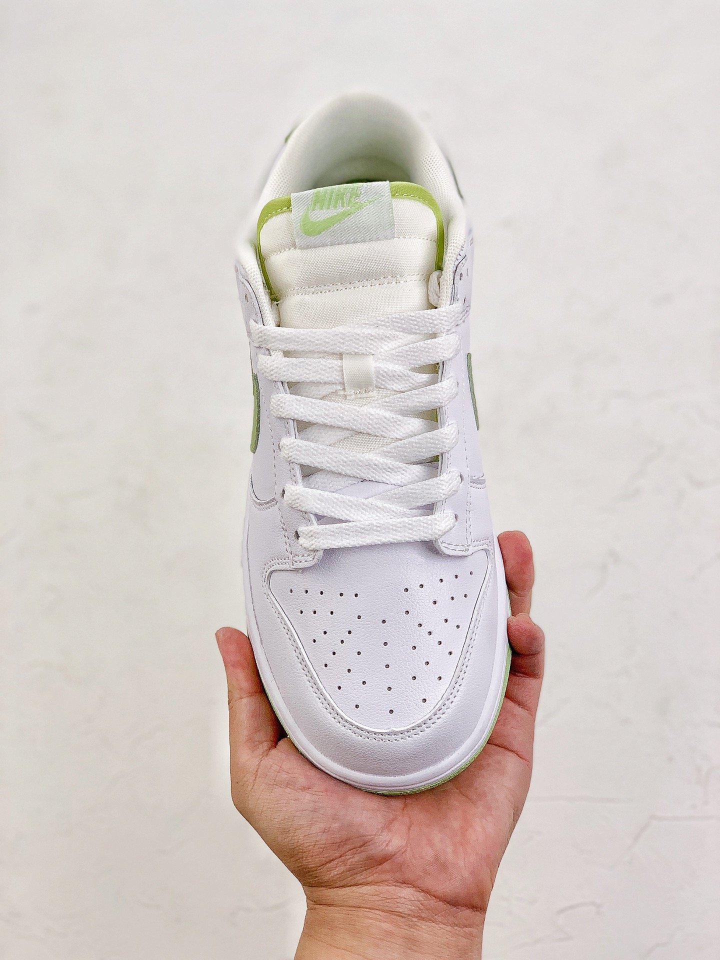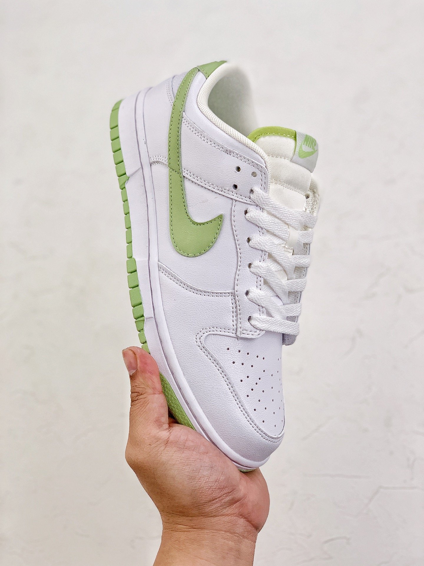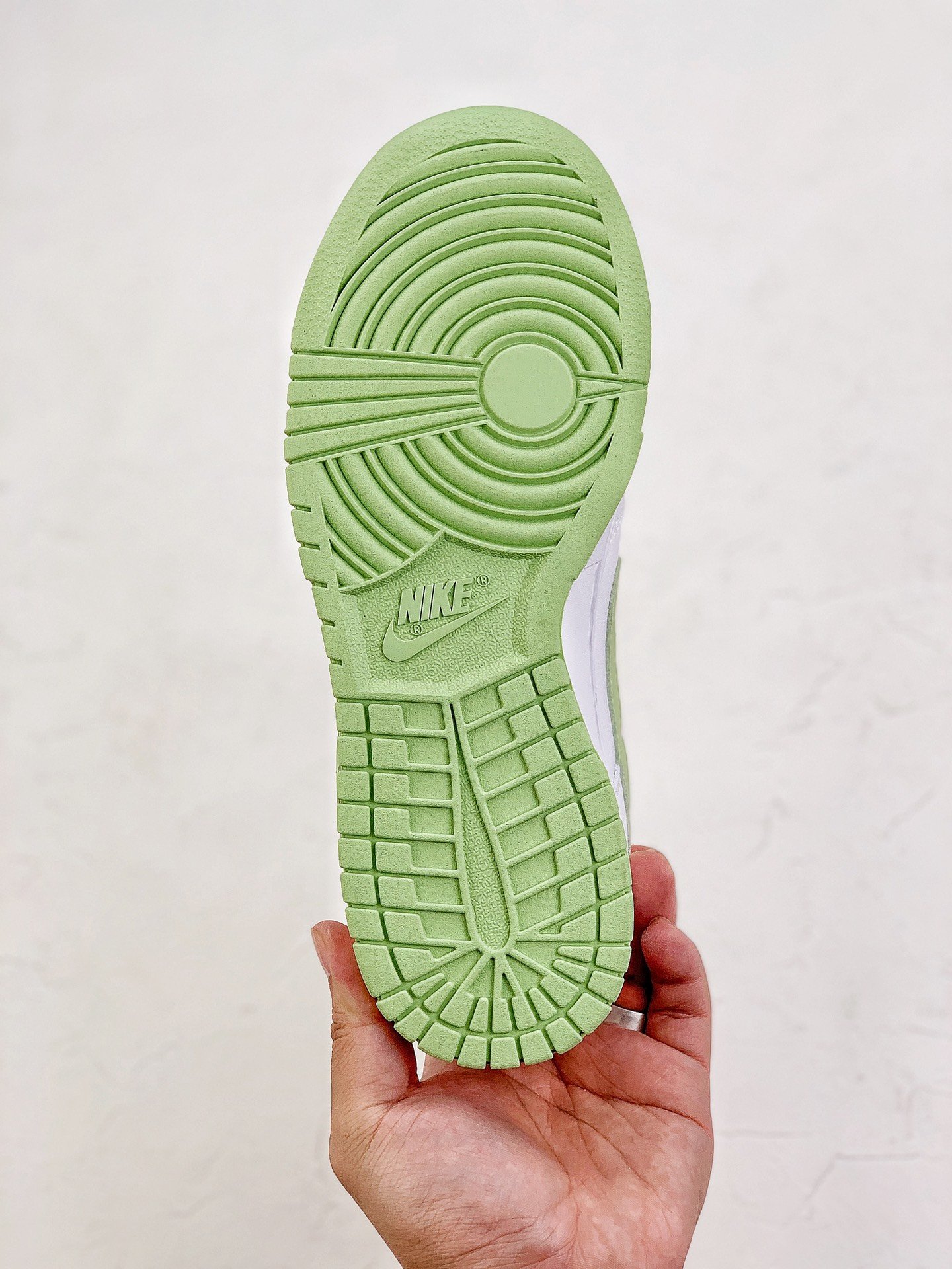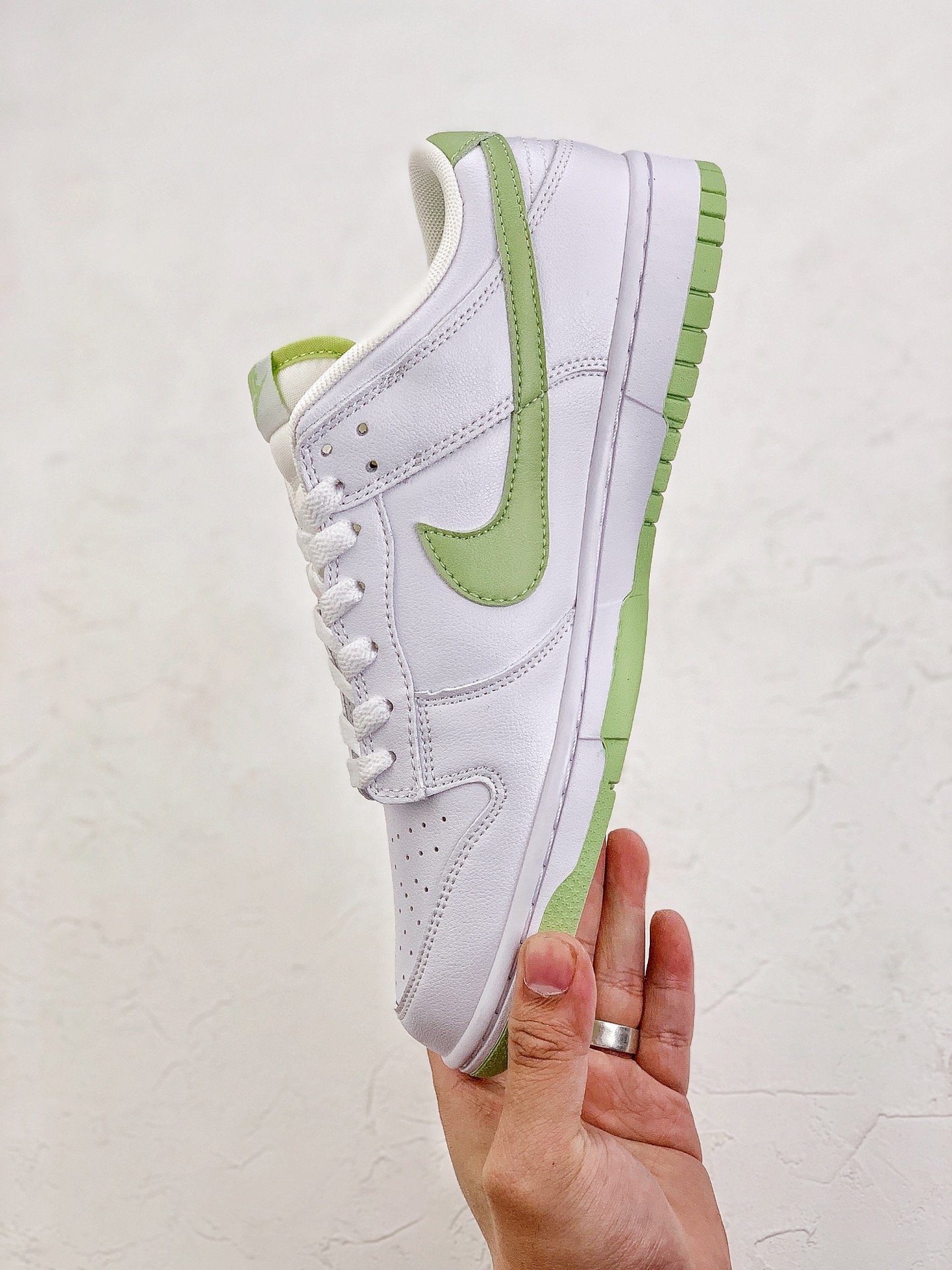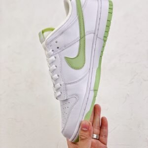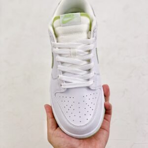 Mica green is entering the summer, and the simple and clean white shoes must be the first choice of many players. Recently, a new pair of Nike Dunk Low “Honeydew” was exposed. The texture of the leather upper is very familiar, and the light color brings a clean and refreshing feeling, grasping the current popular Clean Fit style. In terms of details, including the tongue label,and out sole are dressed in green, and different colors outline the layers of the shoe body.
